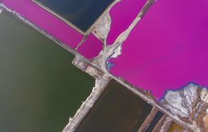 運城鹽湖呈現玫瑰紅