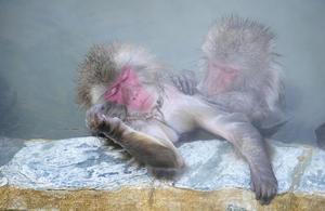 猴子泡溫泉表情愜意