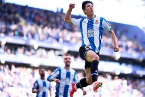 北京時間4月10日,西甲第31輪西班牙人主場迎戰(zhàn)塞爾塔,中國球員武磊比賽第67分鐘替換恩巴爾巴出場。第89分鐘,武磊禁區(qū)內(nèi)得球大力抽射完成絕殺,憑借這粒進(jìn)球,西班牙人主場1-0獲勝。圖片來源:視覺中國