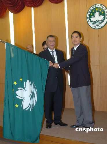 十月二十二日,澳門特首何厚鏵在政府總部向第二屆亞洲室內(nèi)運(yùn)動(dòng)會(huì)澳門體育代表團(tuán)授旗。中新社發(fā) 史利 攝