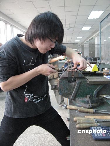 10月24日,首屆兩岸青年學生職業技能競賽在天津舉行。經過激烈角逐,臺灣新竹高級工業職業學校彭捷獲得中職組鉗工操作技能比賽第一名。中新社發 田齊 攝