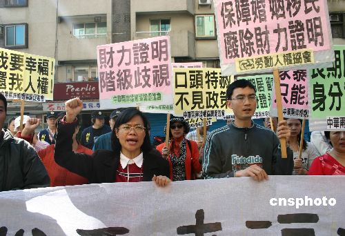 2007年是兩岸通婚二十周年,目前有超過二十五萬名大陸配偶在臺灣生活。但由于當(dāng)局的限制性政策,大陸配偶在島內(nèi)的權(quán)利難以得到保障。十二月二十一日,“中華兩岸婚姻協(xié)調(diào)促進(jìn)會(huì)”在“移民署”門前集會(huì),申要人權(quán)與平等待遇。中新社發(fā) 陳國華 攝