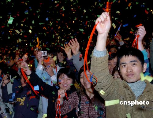 除夕夜,,澳門千余市民聚集在西灣廣場參加“星夢全情”倒數晚會。在倒記時至零時,全城舞動,歡呼跳躍,辭舊迎新。 中新社發 史利 攝