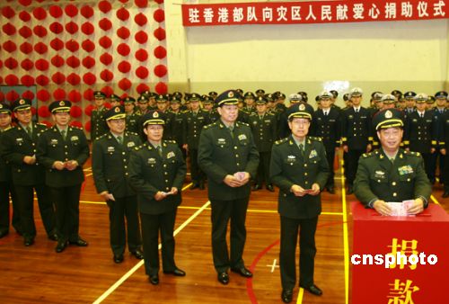圖:解放軍駐香港部隊為內地災區捐款捐物