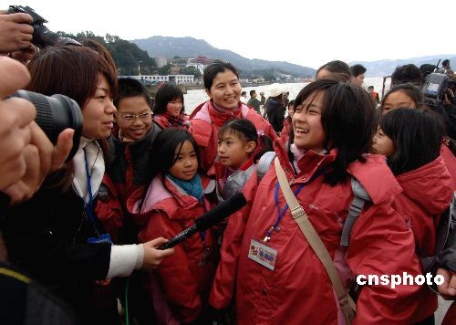 圖為首次來榕的馬祖仁愛小學學生在碼頭高興地接受記者采訪。