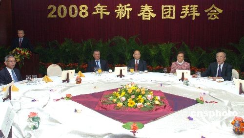 二月二十一日晚,中央人民政府駐澳門特別行政區聯絡辦公室在新竹苑舉行2008年新春團拜會,宴請澳門地區全國人大代表和政協委員。澳門特首何厚鏵、中聯辦主任白志健出席新春團拜會。中新社發 史利 攝