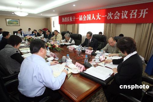 3月5日,出席十一屆全國人大一次會議的澳門代表團舉行全體會議,審議政府工作報告。中新社發 張宇 攝