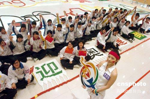 四月二十九日,香港將軍澳東港城商場(chǎng)為迎接北京奧運(yùn)的來(lái)臨,特別舉行“骨牌迎奧運(yùn)倒數(shù)一百天”活動(dòng),以十萬(wàn)塊骨牌砌成面積達(dá)三千平方呎的“奧運(yùn)之城”。圖為參與堆砌骨牌活動(dòng)的學(xué)生在推倒骨牌后雀躍留影。中新社發(fā) 鄧慶樂(lè) 攝