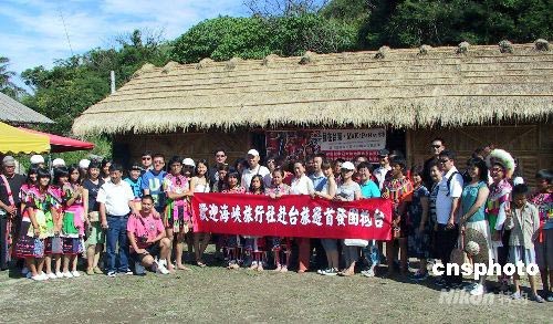 大陸居民赴臺旅游北京首發團7月10日上午抵達臺東市,在臺東富岡里的巴沙哇力部落參加當地一年一度慶祝豐收的豐年祭。中新社發 徐長安 攝