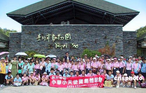 七月十五日,來自北京中關村第三小學的近百位“中華小天使”在臺灣展開寶島夏令營行程,創下兩岸兒童交流人數最多的紀錄。此次赴臺的小朋友平均年齡在十一歲左右,由十六位老師帶領,他們于十四日抵達臺灣,在臺行程九天八夜。圖為北京小學生在參觀臺北市立動物園之前合影。中新社發 徐長安 攝