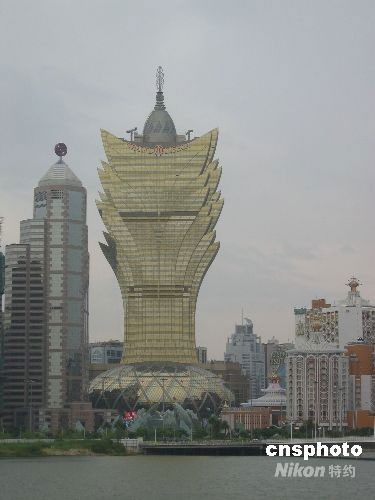 受臺風(fēng)“黑格比”影響,澳門二十三日十三時改掛三號風(fēng)球。圖為陰云籠罩下的澳門中銀大廈和新葡京酒店。中新社發(fā) 畢永光 攝