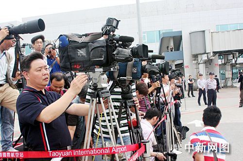 圖:大批媒體在桃園機場守候陳云林包機抵臺