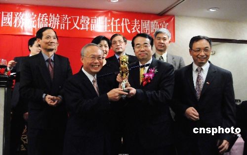 近日,國務院僑辦副主任許又聲率領的國僑辦代表團一行正在華盛頓訪問,在此間一天半的訪問行程中,代表團與中國駐美大使周文重進行了座談,到希望中文學校參觀,與華盛頓數十名著名僑領座談,還探望了一些老僑領。結束華盛頓的行程后,將飛赴加拿大訪問。中新社發 邱江波 攝