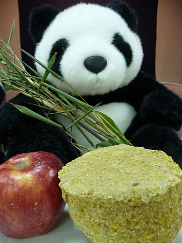 臺(tái)北市立動(dòng)物園為大熊貓團(tuán)團(tuán)圓圓準(zhǔn)備了食物竹子與窩窩頭,圖為特制食物首度曝光。(“中央社”圖)