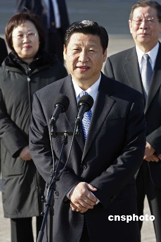 1月10日上午,國家副主席習近平抵達澳門拱北口岸,開始對澳門考察訪問。在拱北口岸,習近平發表講話,為澳門同胞齊心協力應對國際金融危機鼓勁加油。中新社發 盛佳鵬 攝