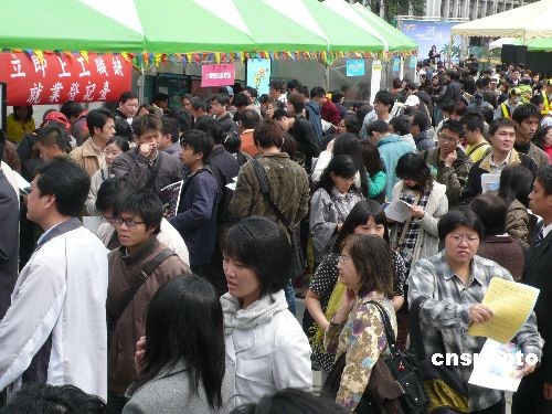 大環境經濟不景氣,臺灣去年十二月失業率超過百分之五,失業人口近五十無萬。“主計處”對今年經濟成長率的預測為負百分之二點九七。臺北市政府勞工局在二十一日舉行了一場就業博覽會,釋出兩千多個工作職位,并提供職業訓練課程供民眾申請。中新社發 路梅 攝