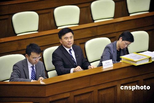 二月二十四日,香港特區財經事務及庫務局局長陳家強(中),在立法會出席雷曼事件相關聆訊。中新社發 譚達明 攝