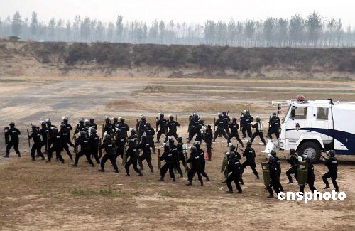 十一月十四日,鄭州特巡警支隊的特警隊員們在緊張地訓練,備戰于十二月上旬舉行的全省特警大比武。據悉,此次大比武將涉及到法律、法規、一千五百米武裝越野、手槍胸環靶射擊、八五或八八式狙擊步槍射擊等。該特巡警支隊自今年七月份組建以來,即擔負起特警反恐、處突的職能。中新社發 李志全 攝