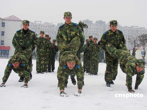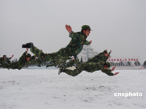 1月16日,濟南空軍某飛行學院某部警通連官兵結合軍事訓練開展文體活動。時值“三九”寒天,江淮大地普降大雪,而濟南空軍某飛行學院訓練場上的官兵們斗志昂揚。中新社發 耿國慶 攝