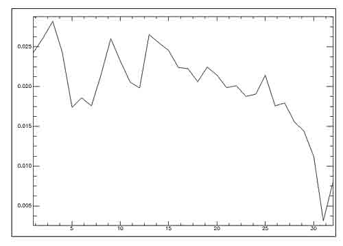 圖3 光譜曲線(橫軸為通道數,縱軸為輻亮度,本圖是圖2反演的光譜曲線)