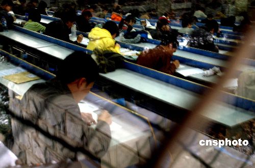1月19日,北京中國人民大學(xué),碩士研究生考生在應(yīng)試。當(dāng)天,2008年全國研究生招生考試開始舉行,教育部公布的數(shù)字顯示,全國碩士研究生報(bào)名人數(shù)為120萬,比去年的128.2萬減少8.2萬,這是2001年以來報(bào)考人數(shù)首次下降。中新社發(fā) 楊慧峰 攝
