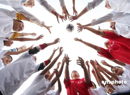 3月27日,重慶清華中學(xué)的學(xué)生正在與英國愛德華七世國王學(xué)校的師生共同開展手球、板球、跳鍵等體育活動。當(dāng)日,由英國駐重慶總領(lǐng)事館牽頭進(jìn)行的團(tuán)隊與夢想”教育交流項目啟動,該項目是一個成功的全區(qū)項目,它通過一系列的培訓(xùn)和引導(dǎo),讓學(xué)生自主舉辦語言學(xué)習(xí)及文化交流和文體活動,發(fā)展和培養(yǎng)14--18歲在校學(xué)生的領(lǐng)導(dǎo)才能。 中新社發(fā) 賀終榮 攝