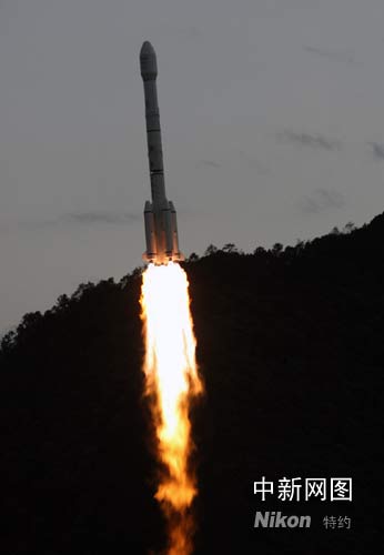 北京時間6月9日晚8時15分,中國在西昌衛星發射中心用“長征三號乙”運載火箭,成功將“中星九號”廣播電視直播衛星送入太空。這是汶川大地震發生后,西昌衛星發射中心首次航天發射,也是中國“長征”系列運載火箭第107次發射。 記者 齊彬 攝