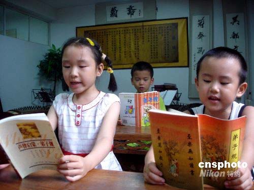 7月14日,孩子們在蘇州一家私塾學習古文。暑假期間,蘇州的一些私塾開設暑期班,教孩子們學習中國古典文學,以培養孩子的文化底蘊、陶冶情操。中新社發 王建康 攝