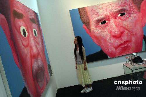 9月11日,正在舉行的2008上海藝術博覽會,共有來自德國、意大利、美國、俄羅斯等20個國家和地區(qū)的140多家一流畫廊參展。本屆藝博會全部展示面積達到2萬4千平方米,成為歷屆之最,不僅繼續(xù)“領跑”亞洲各大藝術博覽會,同時也成為國際上規(guī)模最大的藝術博覽會之一。中新社發(fā) 湯彥俊 攝