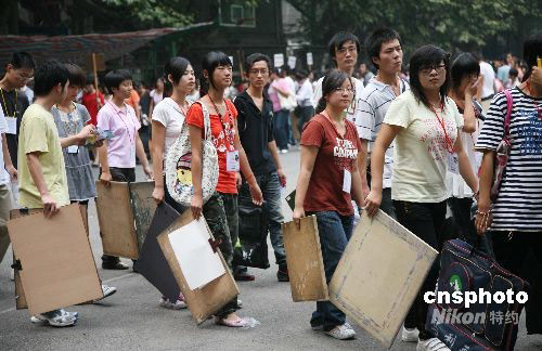 9月20日,參加江蘇省2008年成人高校藝術類專業加試的考生進入考場。當日,江蘇省2008年成人高校藝術類專業加試在南京師范大學舉行,近3000名考生參加藝術類專業加試。據了解,近年成人高校藝術類專業受到親睞。中新社發 鐘山 攝