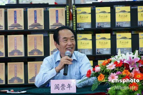 2008年10月5日下午,北京滿學(xué)會(huì)會(huì)長(zhǎng)、百家講壇主講之一、著名歷史學(xué)家閻崇年來到無錫新華書店與讀者見面。見面會(huì)上,他向讀者詳細(xì)介紹了由他創(chuàng)作的《明亡清興六十年》、《袁崇煥傳》、《康熙大帝》等書籍,并就歷史愛好者和廣大熱心讀者關(guān)心的話題進(jìn)行了互動(dòng)交流。中新社發(fā) 李 杰 攝