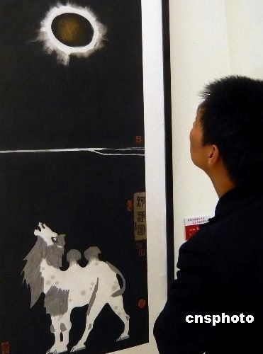 10月14日,在北京中國美術(shù)館展出的“首屆中國城市藝術(shù)書畫家提名展”吸引參觀者,該展由中國城市發(fā)展研究會城市藝術(shù)專業(yè)委員會主辦,展覽匯集了中國當(dāng)下具有較高藝術(shù)成就的書畫家的作品,旨在提升全國城市文化品味,促進(jìn)書畫家走向社會,服務(wù)于社會,是當(dāng)代書畫家參與經(jīng)濟(jì)發(fā)展,城市建設(shè),傳承民族文化的橋梁和紐帶。圖為展覽作品之一《大漠長河》。中新社發(fā) 錢興強(qiáng) 攝
