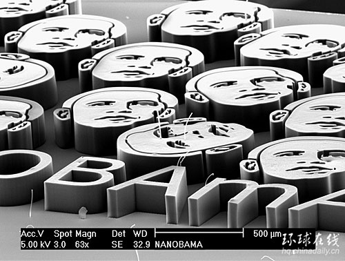 據(jù)美國(guó)生活科學(xué)網(wǎng)報(bào)道,在近期的新聞媒體中,美國(guó)當(dāng)選總統(tǒng)巴拉克·奧巴馬(Barack Obama)的頭像已是司空見慣,不再讓人感到陌生。目前,科學(xué)家使用納米技術(shù)制造了微型三維“納米奧巴馬”頭像,這種立體逼真頭像竟比鹽粒還要小。(劉一川)