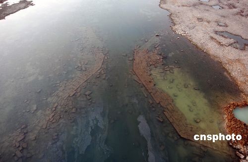 11月21日,京杭運河山東臺兒莊段明朝古運河船閘閘址。近日,一座明朝時期的古運河船閘在京杭運河山東臺兒莊段進(jìn)行河道疏浚工程時被發(fā)現(xiàn)。這座古船閘全部由條狀塊石和大塊黑磚壘砌,船閘最窄處有八米,反映出當(dāng)時漕運繁忙景象。據(jù)考證船閘修建于明朝萬歷年間,是明代泇運河上的頓莊船閘,是棗莊段運河(泇運河)的八閘之一,距今400多年。中新社發(fā) 高啟民 攝