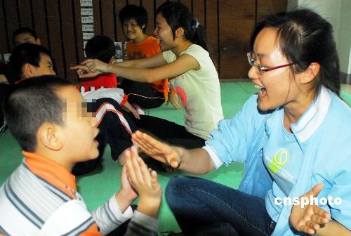 2009年4月2日是第2個世界自閉癥日,海南省海口市各家特教培訓機構(gòu)紛紛開展家長聯(lián)誼、趣味游戲等活動,讓親情和訓練相結(jié)合敲開自閉癥孩子的“心門”。自閉癥也稱孤獨癥,是以嚴重孤獨、缺乏情感反應、語言發(fā)育障礙、刻板重復動作和對環(huán)境的奇怪反應為特征的精神疾病。據(jù)統(tǒng)計,目前中國約有各類自閉癥患者150萬人,其中兒童約有50萬人左右。中新社發(fā) 善平 攝