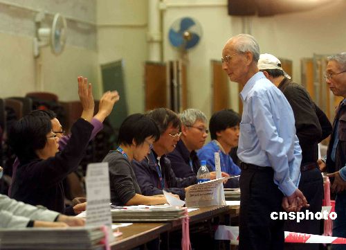 圖為年邁的婆婆在人攙扶下,往票站準備投票。