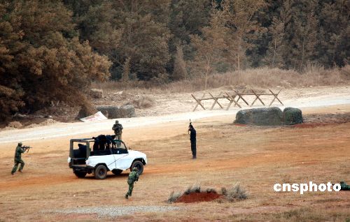 12月25日 “攜手-2007”中印陸軍聯(lián)合反恐訓(xùn)練圓滿(mǎn)結(jié)束。隨著實(shí)兵綜合演練課目的完成,中印兩軍舉行了簡(jiǎn)短而熱烈的訓(xùn)練結(jié)束儀式。中新社發(fā) 張雷 攝