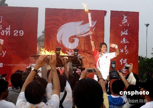 圖:北京奧運圣火在曼谷傳遞順利結束 (2)