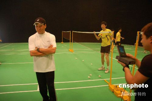 5月6日下午,中國羽毛球隊總教練李永波與羽球國手鮑春來,一同出現在北京奧運環保公益廣告片的拍攝現場。由“中國環境意識項目”主辦、北京華映人國際影業投資有限公司拍攝的北京奧運環保公益廣告系列片。此次李永波出演的《節約能源篇》是該系列片的最后一部。據悉,該片是“中國環境意識項目”的子項目,也是聯合國開發計劃署、北京奧組委和環境保護部的合作項目,目前已開始陸續在奧組委大型活動、中央電視臺及奧運賽場上循環播放。中新社發 潘旭臨 攝