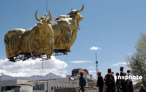 圖:拉薩市標銅雕“牦牛”搬家