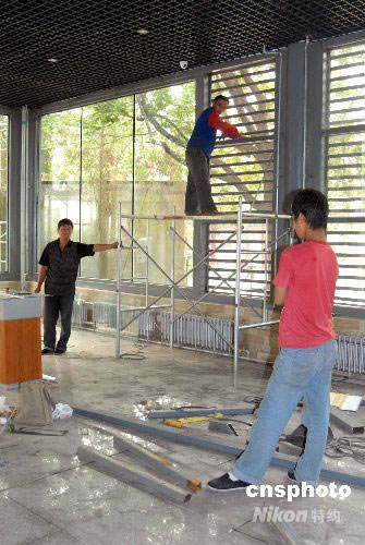 圖:正在裝修的奧運大熊貓展示大廳(2)