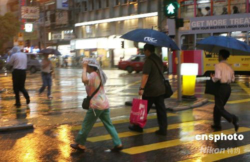 五月二十九日,香港天文臺發布黃色暴雨警告,市民出行受到一定影響。中新社發 武仲林 攝