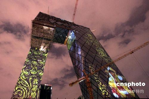 圖:巨型投影扮靚央視新址 體育精神鼓舞中國加油 (4)