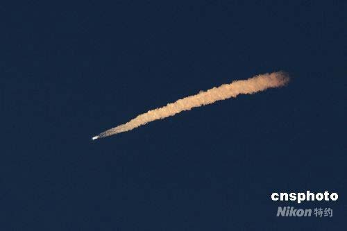 北京時間6月9日晚8時15分,中國在西昌衛星發射中心用“長征三號乙”運載火箭,成功將“中星九號”廣播電視直播衛星送入太空。“中星九號”投入使用后,將使數千萬家庭可直接收看北京奧運會盛況。中新社發 齊彬 攝