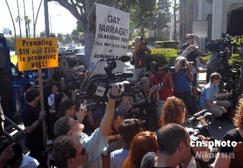 洛杉磯首個(gè)同性戀合法婚姻遭抗議