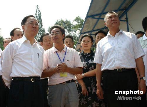 曾蔭權何厚鏵慰問地震災區彭州通濟鎮臨時學校學生