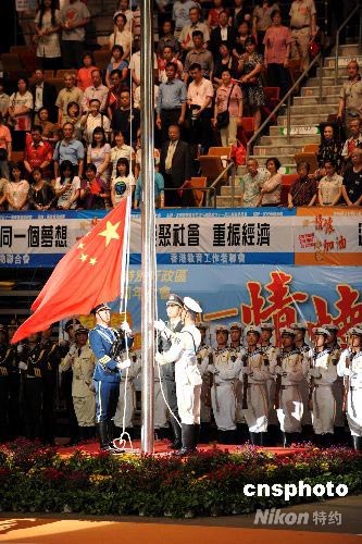 駐港部隊儀仗隊在慶回歸匯演開幕式上升旗