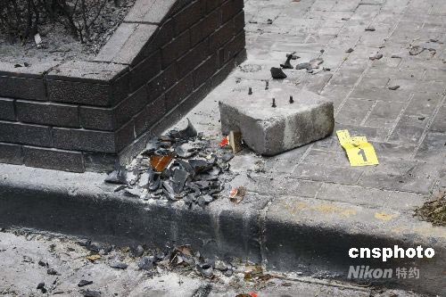 7月1日,一名外地來滬歹徒持刀闖入上海閘北區政法大樓,連續捅傷9名民警和1名保安,截至到目前發稿,已有5人死亡。據了解,歹徒先燒東西,然后闖進政法大樓里行兇,目前,閘北政法大樓附近已拉起大范圍警戒線,路邊可以看到砸碎的玻璃瓶和焚燒的痕跡。中新社發 宣克炅 攝