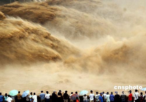 7月4日從小浪底建管局獲悉,小浪底水庫自7月3日6時開始按1500立方米/秒控泄,這標志著小浪底水庫2008年汛前調(diào)水調(diào)沙中所承擔的任務已經(jīng)完成。此次調(diào)水調(diào)沙,小浪底水庫下泄水量約40.3億立方米,水庫補水約28億立方米。小浪底水庫水位由調(diào)水調(diào)沙開始時245.24米回落至調(diào)水調(diào)沙結(jié)束時222.76米。圖為6月23日、29日小浪底水庫調(diào)水調(diào)沙時的情景。中新社發(fā) 平白 攝