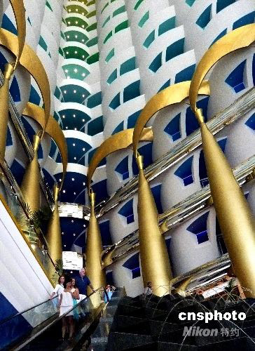 圖為帆船酒店金碧輝煌的大廳。中新社發(fā) 錢興強 攝